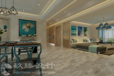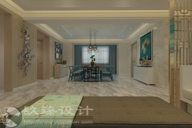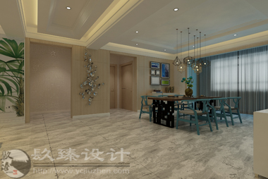 项目名称:阅海壹号院项目面积:146㎡ 俗话说得好,一千个人心中有一千个哈姆雷特,不同的人对于美的理解与追求也是各不相同的。室内设计亦是如此,本案业主对于美得感知就是简洁与和谐。简洁是室内设计中特别值得提倡的手法之一,也是近年来十分流行的趋势,这要求室内环境中没有华丽的修饰和多余的附加物,要坚持以少胜多,一少而精的原则,把室内装饰减少到最小,即是少就是多,简洁就是丰富。 本案中室内整体色调偏向于冷色调,蓝青色从视觉上带给人寒冷的感触,在小编的认知中,喜欢冷色调的人都是非常冷静沉着的,事实证明就是这样,业主本身非常稳重,他注重家庭关系的和谐,他觉得和谐能使人在视觉上,心理上获得宁静、平和的满足。而且现在不是追求和谐社会吗,和谐社会当然是从和谐家庭开始的。