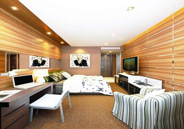 酒店式房间装修技巧中,空间的巧妙利用方法是最为关键的一点。一般来说,大部分人都比较偏爱立体造型的居住环境,因为这样的环境住起来比较不会有压抑感,对人体的身心发展都有比较正面的引导作用。如果想达到这个效果,设计时就需要着重强调楼层的高度,建议可以通过吊柜协助创造充分的置物场所,又或者通过选购上下铺的床来腾出使用空间,不仅可以让房间富有个性,还能增加室内环境的趣味性。