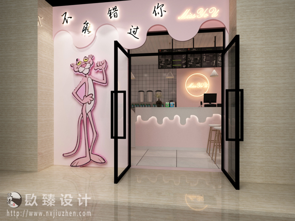 下面,小编带大家欣赏一下不能错过你奶茶店的装修效果吧! 不能错过你奶茶店的门头都采用鲜亮的品牌主打色调粉色,上面印着不能错过你的品牌名和一只可爱的粉红豹,凸显出奶茶店的特色。门头是一家店铺的脸面,采用明亮的色彩让人第一眼就印象深刻,就能吸引更多的顾客。同时,整个店的装修风格为现代简约风格,简约的线条,时尚的造型,流行的色彩,让人感受自由的气氛,更能激发天马行空的想象力。