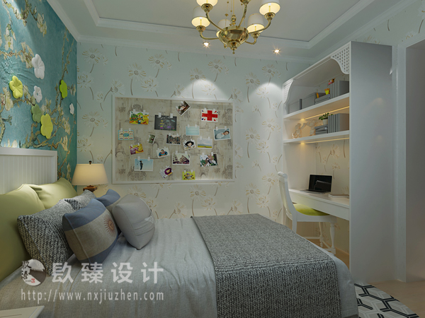 卧室的功能主要是睡眠休息,属私人空间,不向客人开放,所以卧室装修不必有过多的造型,通常也不需吊顶,墙壁的处理越简洁越好,通常刷乳胶漆即可,床头上的墙壁可适当做点造型和点缀。卧室的壁饰不宜过多,还应与墙壁材料和家具搭配得当。卧室的风格与情调主要不是由墙、地、顶等硬装修来决定的,而是由窗帘、床罩、衣橱等软装饰决定的,它们面积很大,它们的图案、色彩往往主宰了卧室的格调,成为卧室的主旋律。