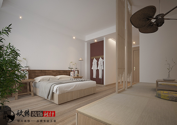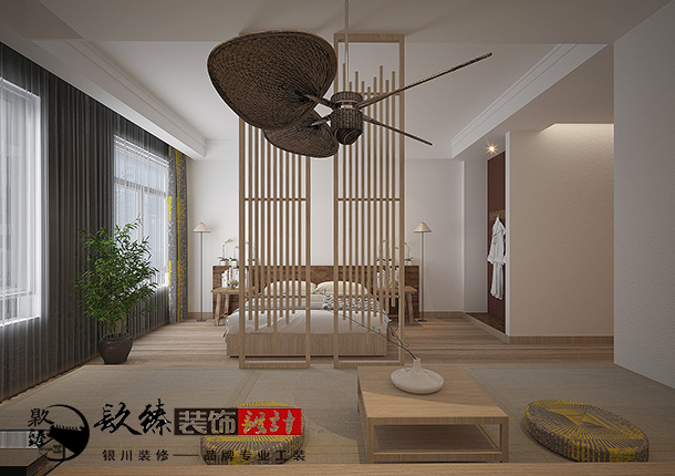 原木生态木饰面和地面地板构成一幅大自然柔和的画面,该酒店套房比较简约,所有的家具设定都是属于非常小巧类型的。为了缩小一部分投资设计师省去了沙发等家具的使用,以日式坐垫代替,显得更为自然,银川装饰公司镹臻装饰小编认为这家酒店设计的非常有格调,小资情怀。和一家人出去散心旅行,一定会让您非常满意。
