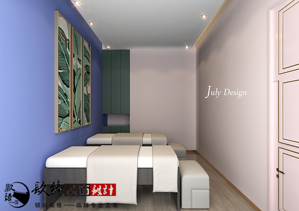 要让顾客进店后感到轻松、舒适、温馨,并具有信赖、安全感,那么店内色调更为重要,过于压抑的颜色会让人感到不安,产生急躁的情绪。所以银川装饰公司镹臻装饰产后修复中心设计的时候色调一以紫色、粉色等温馨、舒适的色调为主,这样会使顾客感觉放松、舒适。