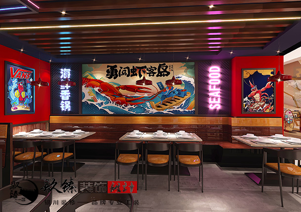 银川装修公司请您欣赏一家专业以“鱼和虾”为特色的工业风连锁主题餐厅