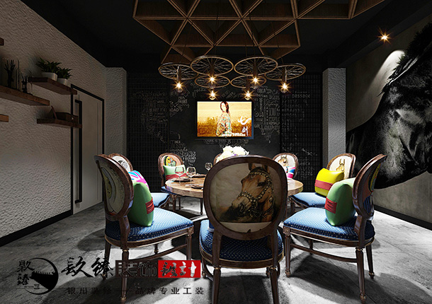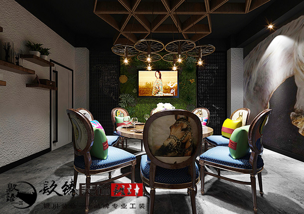 包房的设计中较为私密的空间,因干净、不被打扰,表现出一定的安全感。其一,具有鲜明地方文化传统的特点,使顾客产生新鲜感;其二,与家一样符合生活习惯,亲切,包间内适合的灯光能让菜品更具诱惑力,增加菜肴亮点并起到增加食欲。一幅生动的壁画,配以室内木质墙面装饰,吊顶部分使用木质车轮造型作为装饰,更与自然相互结合,电视墙的设计使用人造花朵和人造草坪搭配,如同草原一样,突出了该餐厅的主题特色。包间整体内使用黑白色系,装饰上使用亮色系的桌椅进行中和效果,加上灯光的照射下,使空间的的色彩感十分的柔和。所有的元素搭配都贴近人文与自然,听接近蒙古特色,这也是本案设计最终要表达的主题,蒙餐文化是游牧民族的智慧和文化沉淀的表现,在饮食文化中,蕴藏着他们的历史传统,也渗透着游牧文化的精髓,同时也体现着蒙古族人民对自然的崇尚和对自由的向往,追求人与自然的融合。 以上是小编为大家整理的草原印象蒙餐装修设计案例,希望大家喜欢哦。 |