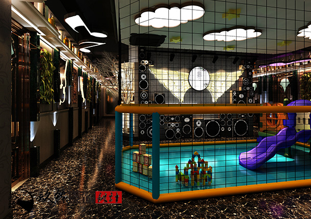 顾客在这种浓烈的氛围之下一边唱歌,一边吃火锅,真的是一种享受呢。所有的室内设计最开始的初衷都是为了美观的同时能更方便人们的体验,在一楼的大厅还设计了一个小型的儿童设施,这样更方便了一些带小孩的顾客。