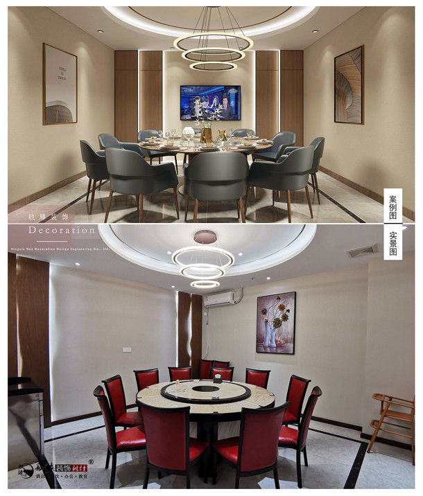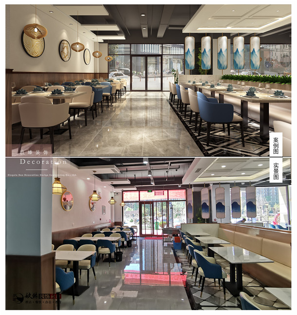 本案改造重点集中的规划将吧台、门头拆除,以便重新规划;新建小块墙体 ,使得空间更加规整,同时形成餐厅整体区域划分。由于空间充足,通过新建墙体 ,打造中式细腻感,餐厅空间更加合理。