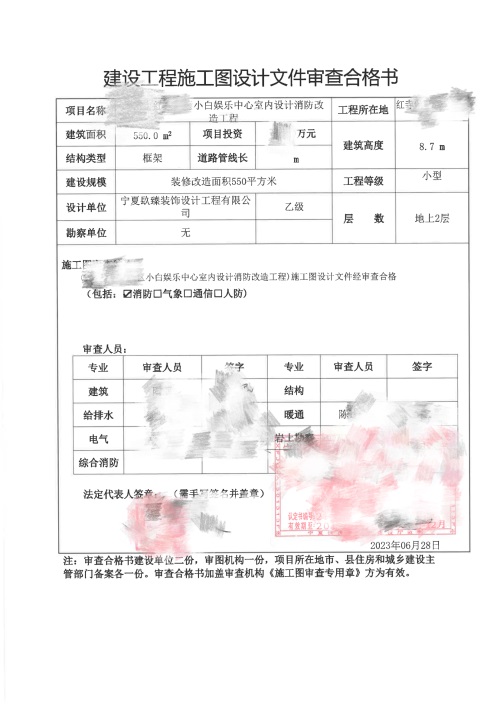 银川消防设计公司推荐|银川小白烧烤店消防设计审图合格书