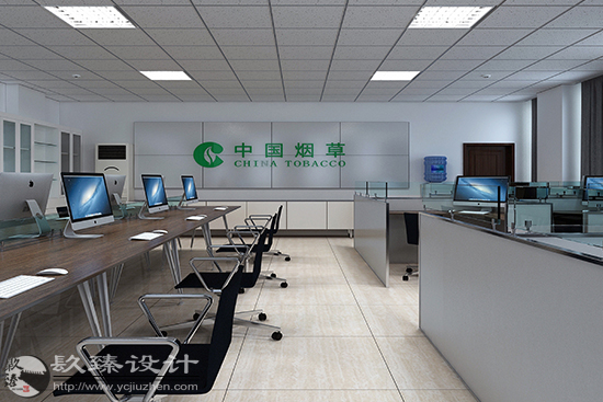 国内企业巨头烟草公司该怎么装呢,首先得有展示台吧,想到这点银川装修公司银川室内装修设计提出了自己的装修想法,将展台作为我们的装修重点,突出公司的独特形象气质,华丽的欧式吊灯昭示了烟草公司不一样的品味。