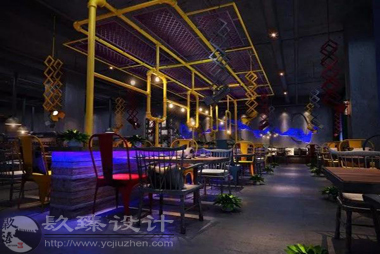 项目名称:镹臻烧烤店一项目面积:900㎡ 现代日常生活中烧烤早已在我们的日常生活中占据了一定地位,时间长了不去吃上一会还真挺想念的。我们今天要介绍的这个烧烤店可别看它外面普普通通,里面可是别有洞天,当然,我说好不顶事,得看官您自己瞧上一瞧才能下结论!本案设计中银川烧烤店装修设计银川餐厅装修设计在归本主义设计理念的基础上,以“时尚怀旧”为主题,以“电影”为设计灵感,以“胶片”为主元素贯穿整体。 光看图片暗色系的装饰给人以不真实的感觉,银川装饰公司银川办公室装修设计用清水混凝土、钢、原木等自然物架构打造内部空间,局部绿植的点缀,冷暖色调的反差对比,给人以梦幻的感觉,并营造出复古怀旧的浪漫气氛,也更好地强调了设计的主题。粗糙的水泥抹平地面是粗狂的,然而蓝紫色灯光又给了这片空间一种妖艳的视觉感受。