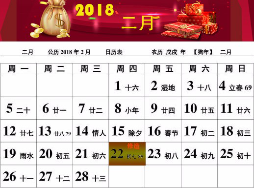 您的位置:首页>> >>装修攻略>>最新资讯>> 2018年2月适合装修的黄道吉日