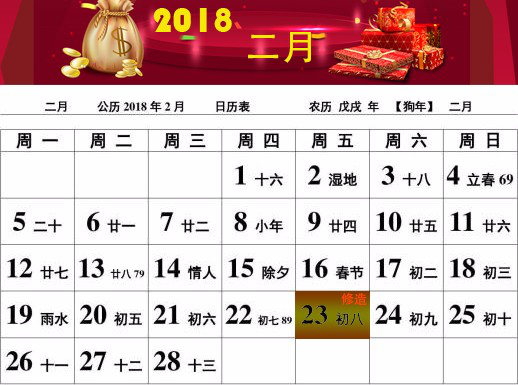 公元2018年02月23日 农历01月08日 星期五 双鱼座