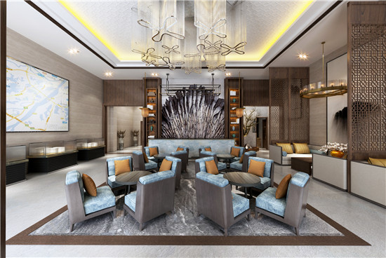 总接待台是整个售楼处比较核心的区域,这里是人们进入售楼处后最先看到的地方。在这里可以做一个有关项目的形象墙,能让消费者第一时间对楼盘有大致的了解。同时我们可以利用宽敞空间做一个做足够大的造型,用以展示售楼处的形象,总接待台的高度不要太高,否则会给人不宜接近的感觉,不利于客户体验和楼盘的销售。