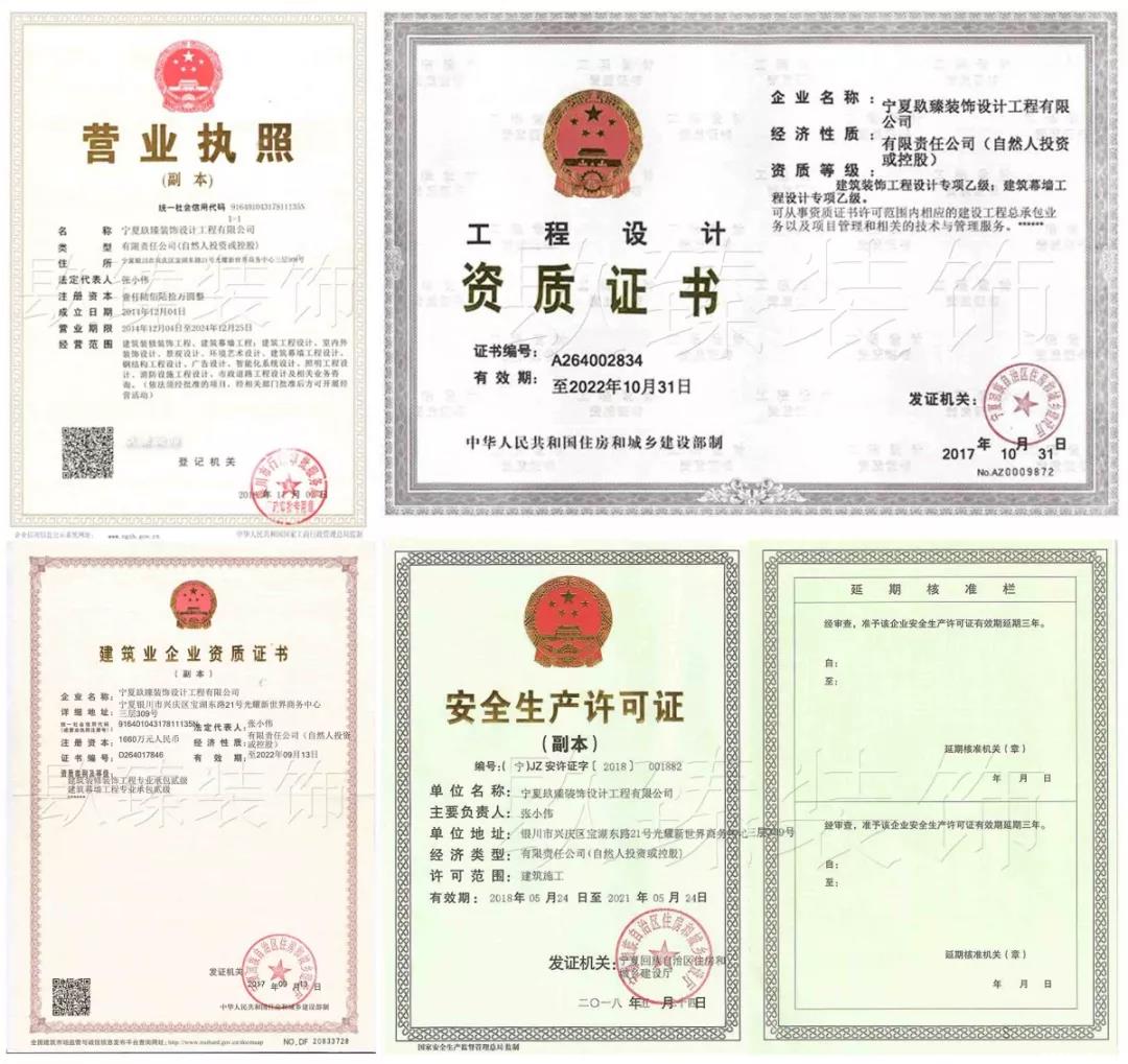 企业资质证书  合作方要求 1.必须是本地合法经营企业 2.合作方必须有固定经营场所且经营三年以上 3.企业注册资金在500万以上 4.有固定的施工团队 5.有酒店、餐饮、办公、教育等商业项目施工经验的企业优先 6.对本行业有做大做强的长远发展规划