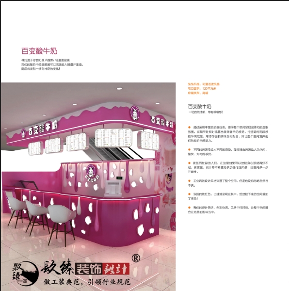 银川奶茶店装修|银川奶茶店装修设计|镹臻装饰通过运用丰富的动感线条,使得整个空间呈现出柔和的选取氛围,在细节处顿时流露出低调奢华的感觉。打造简约而质感的环境效应,烤漆饰面和滩涂互相配合,好让整个空间发挥他们独有的空间能力. 不同的光源带给人不同的感受,如玫瑰色光源给人以休闲、愉快、好吃的感觉。
