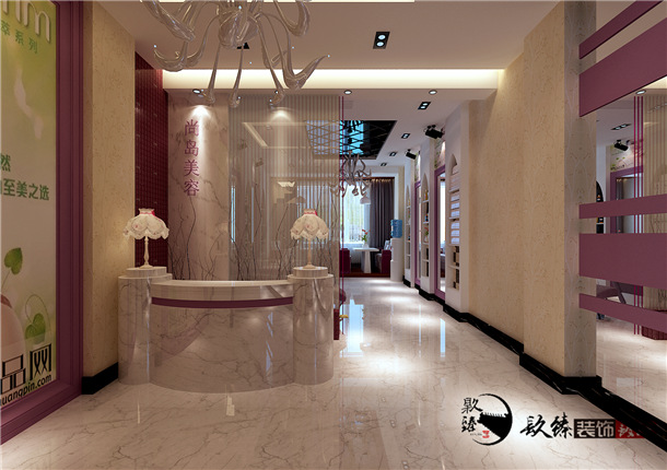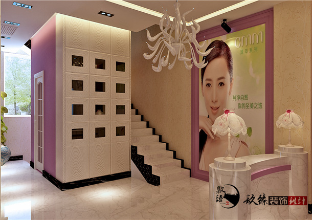 设计师在美发店中心部位选择轻快愉悦明了的色彩为装修主色调,墙壁、地面、天花等运用大面积的造型色彩,细节部分经过特殊的处理。店面入口我们多采用落地玻璃,增加店面的扩张感及通透感。店里所有的工具都摆放得非常整齐,并有专门的整理箱和整理架。