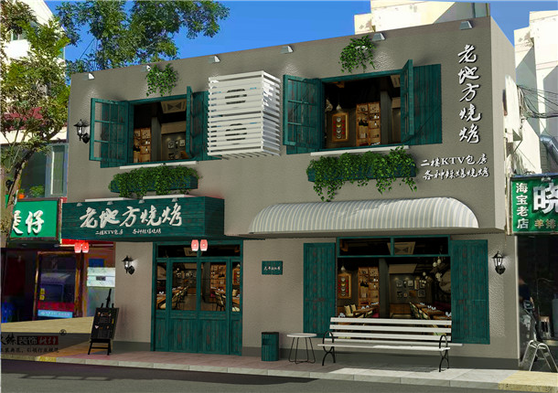 在烧烤店包间的装修设计中,银川烧烤店装修|银川烧烤店装修设计|镹臻装饰小编觉得灯光的搭配是重点之一,灯光的选择,店面比较小的用40W的日光灯2支,周围打上4个黄色的节能灯,这样可以使上来的串和菜更有食欲,有报道说光线的明暗会影响人的食欲和心情。娱乐场所的初衷在于给如何给客户更好的心情,多彩绚丽的灯光可以使前来消费的顾客更加放松,大家在看电视音乐节目的时候都会注意到一点,舞台的灯光经常是非常绚丽柔和。 大厅内两边墙面造型装饰一面以木质造型植入、另一面是光面材质的铺贴,相互映衬,再加上顶面蓝色的水晶吊灯,宛如一幅星空艺术画作。以圆形卡座充分合理的利用的空间,自然流畅的融入进去,大厅的整体色系以深棕色为主调,大家都知道,餐饮行业非常容易被油烟所污染,即使店家已经很努力的去保护整洁的环境,但是还是避免不了受到一些污染,所以深色系的地砖,墙体会更实用一些。 |