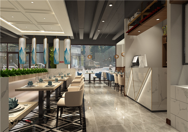 在本案中银川餐厅装修|银川餐厅装修设计|镹臻装饰设计师以现代手法做为空间主要元素,打造一个休闲、时尚为主题的用餐环境。在硬装方面,材质以黑色金属和实木为框架,水泥墙为底色,加入白色水磨石形成高中低色调对比,水泥砖与木纹砖穿插结合装饰地面。软装局部加入编制物,棉麻布艺为空间增添质朴气息。 餐厅色彩以素雅的黑灰为空间主色调,银川餐厅装修|银川餐厅装修设计|镹臻装饰配以金属色贯穿及延伸整个空间,整体感受是时尚精致有细节。在用餐区的设置上以舒适的卡座为主提高用餐舒适度及私密性,明档及厨房前置做开放式体验,让顾客感受到食材的完整呈现。在餐厅内,随处可见与轻奢系列的相关设计元素,这与餐厅的主题相得益彰。而餐厅内的装潢更是切中主题。本案最终将设计风格定义为现代轻奢风,就是当下非常流行的一种风格,现代与轻度的奢侈相结合,属于中高端的定位,有着自身独特的品位。面对这日益提升的审美,将轻奢概念带入室内装饰中不仅代表着精品生活方式,更代表着正在享受高质量的生活细节。设计师运用极致简约风格为基础,再通过一些精致软装元素来凸显质感。