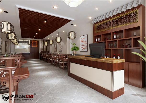 空间的设计具原创性,彰显出餐厅深厚的文化内涵与健康的生活理念,由于现有建筑的面积与使用功能的影响,决定了整个餐厅部分区域需要具有可变性和灵活的功能使用效果。?简约的中式风格餐厅,现代与古典相结合,粗糙与惊喜相结合,儒雅敦厚的中式风格和革新潮流的现代风格相结合,共同打造了时尚、传统的中餐厅。 银川餐厅装修|银川餐厅装修设计|镹臻装饰设计师在新中式风格中餐厅装修设计的时候,秉承为顾客营造一个时尚、舒适、又不失文化底蕴的就餐环境为中心。推门进入,映入眼帘的是吧台区域,简单的吊顶加上漂亮的灯饰,唯美大气。同时,在灯光的设计上面,设计师又用温馨的暖色灯光与灯笼造型的灯饰做渲染,烘托整个空间,给人以沉静舒适的景象。 |