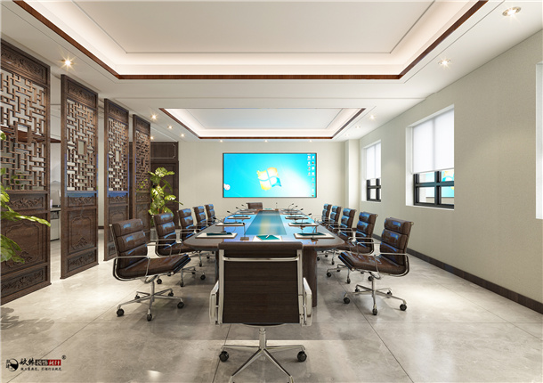 本案设计风格为现代中式办公室。本案设计给人优雅清幽、大气时尚的氛围,并且能够在风格中找出不同于平常的感觉。将富有中式韵味的元素和现代质感的元素灵巧结合,为人们营造出一幅清雅的画面,创造一份怡然自得的工作心情。 整个空间氛围中,除了中式元素的优雅清净,设计师大量使用高隔隔断,既能划分空间的层次感,还能增加空间的功能作用;在软装搭配上,运用的都是最为经济和划算的设计元素和软装家具,但是却能在最简单的元素中,设计出如此高端大气的氛围,设计风格和设计水平值得大家为之学习。