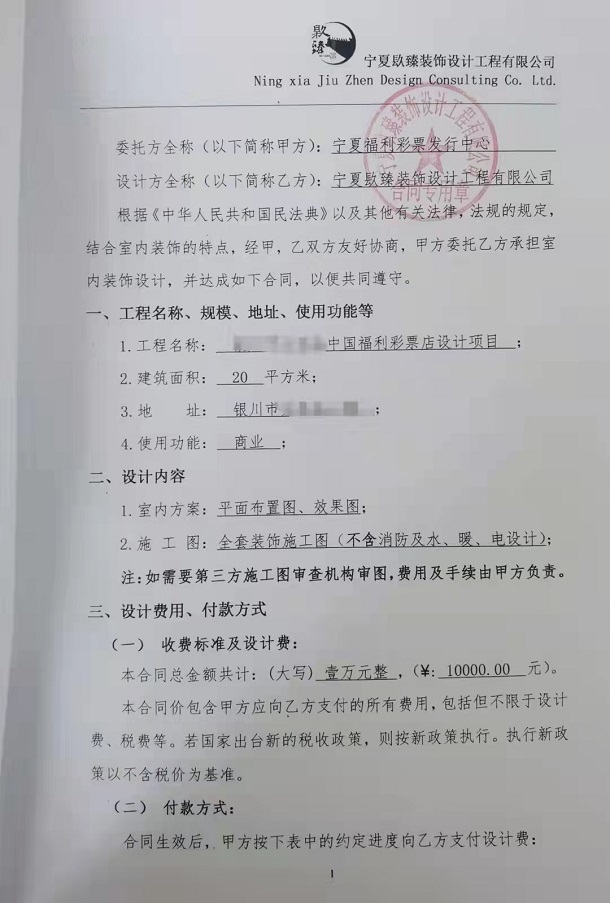 银川工装公司恭喜宁夏福利彩票店设计装修签约镹臻