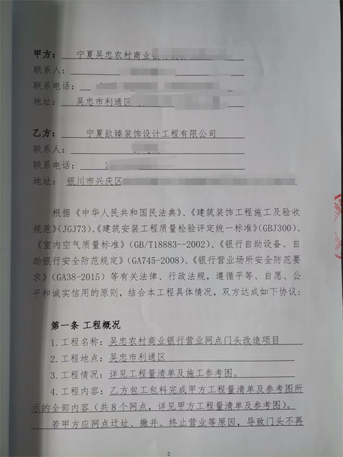 吴忠市商业银行装修项目签约镹臻装饰,合作愉快! |