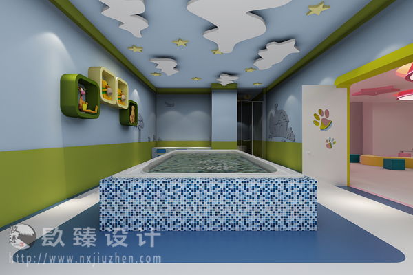 东方爱婴早教中心最亮眼的地方应该就是游泳馆了,此空间并没有那么的宽敞,但是足以表达设计师追求自然的设计理念。主要以淡蓝的色调为主,营造了一个时尚大气的空间、/span>