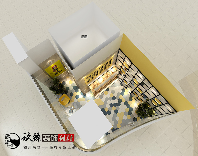 快销餐饮食品店的装修设计上,要注意色彩的运用+a href="//m.cceshi.com/m/{$download_dir}/" target="_blank">银川餐饮装修设计|镹臻装饰|银川装饰公司设计师在前期对色彩的定位上以亮色为主,因为面积不大,所以靓丽的色彩会比较突出,亮黄色更显眼一些,同时也是暖色调,这样可以增加顾客进店消费的几率。地面的造型也是和墙面的多边形互相映衬、/span>