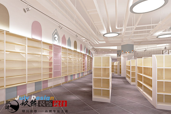 本案例是银川装修公司|银川装饰公司|银川装修罐/span>设计帇/span>李丽的作品。当大家看到下面的设计方案就应该可以感觉到了,李丽的设计作品总是能让人感觉到很温柔,大方,舒适。母婴店的客户群体通常都是小宝宝和父母,所以考虑到小宝宝,使用的都是比较清新的淡色系搭配。在造型上会以一些卡通的任务来加以装饰,但尽量也都是减少一些复杂的饰物,以免对孩子们造成意想不到的危险、/span>